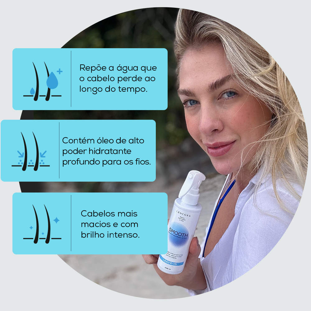 O Leave-in Smooth é o toque final indispensável para um cabelo impecável e protegido ao longo do dia. Desenvolvido com uma fórmula leve e multifuncional, ele hidrata, disciplina e protege os fios, proporcionando maciez e brilho sem deixar resíduos. Ideal para todos os tipos de cabelo, especialmente para fios secos e danificados, o Leave-in Smooth é o aliado perfeito para quem busca um visual naturalmente bonito e bem cuidado.