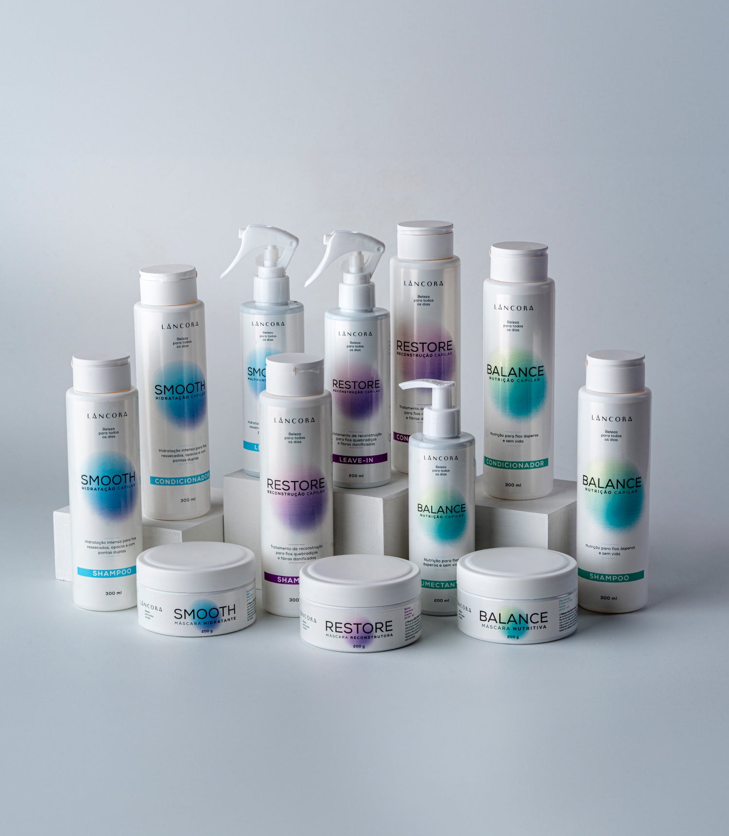 Conheça o cronograma capilar da Lâncora. Três linhas exclusivas para atender todas as necessidades do seu cabelo. Hidratação intensa com Smooth, nutrição profunda com Balance e reconstrução completa com Restore. Cuidados capilares de alta performance e beleza para todos os dias.